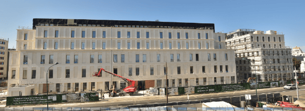 Les deux sous-sols de parking et le rez-de-jardin, en infrastructure, le rez-de chaussée, le 1er étage sont terminés en gros œuvre.